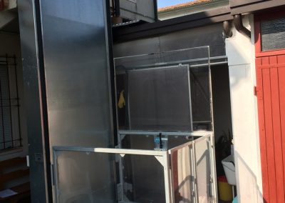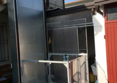 Quando una persona disabile si trova a doversi muovere in sedia a rotelle e c’è una scala o un dislivello da superare, molto spesso ci si trova a dover decidere se sia meglio installare un montascale a pedana oppure una piattaforma elevatrice: questo esempio, corredato di alcune immagini dal luogo di installazione, è in grado di far capire anche a chi non se ne intende la fondamentale differenza di funzionamento fra i due dispositivi. Nelle immagini vediamo infatti una PIATTAFORMA ELEVATRICE, e ci rendiamo subito conto che questa è progettata per raggiungere il piano desiderato muovendosi IN VERTICALE, un po’ come se fosse una sorta di mini-ascensore (ma tecnicamente occorre ricordare che elevatori e ascensori sono due code ben diverse, sia dal punto di vista tecnico che delle direttive e normative).